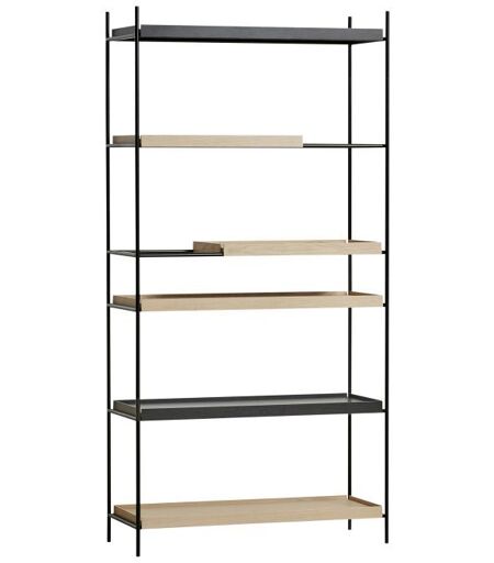Woud Tray Shelf High H: 201 cm - White Pigmented Oak & Black Painted Oak