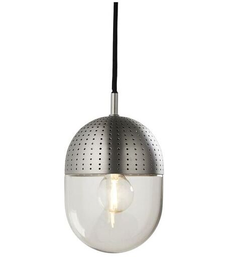 Woud Dot Pendant Medium H: 16,6 cm - Satin Dot pendlen fra WOUD er designet til at skabe hyggelige stunder i hjemmet. Lampen er inspireret af performeret metal og de mønstrer, som lyset skaber når det skinner gennem hullerne. Med sit elegante udtryk vil pendlen altid skinne - uanset om den lyset er tændt eller slukket. Pendlen findes i 3 størrelser, så du har rig mulighed for at mixe og matche størrelserne. Design: Rikke Frost Mål: Ø: 12 cm H: 21 cm Ledning: 300 cm Materiale: Metal og røget glas Tekniske specifikationer Ledning: Stofbeklædt Fatning: E14 (cUL: E12) Lys: Max 25W / 250 LM Baldakin: Sort - rund ...