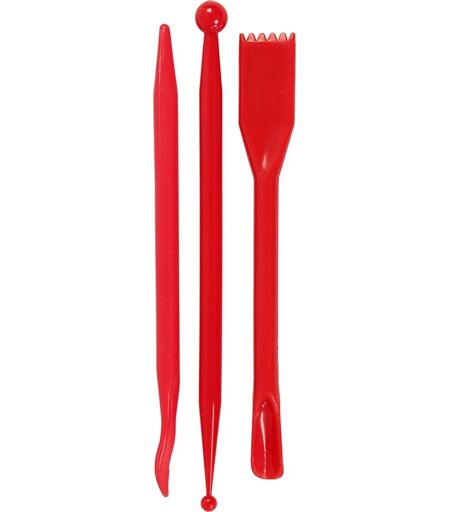 Modelleringsværktøjssæt i plastDu får her en et praktisk lille modelleringsværktøjssæt med 3 forskellige modelleringspinde og -værktøjer. Modelleringspindene er fremstillet i rød plastik og er velegnede til brug sammen med Silk Clay, Foam Clay og andre typer modellervoks, samt forskellige slags ler og Fimoler. Brug f.eks. modelleringsværktøjerne til at skabe kreative udformninger og finurlige små detaljer. Sæt med 3 forskellige modelleringspindeMateriale: Plastik ...
