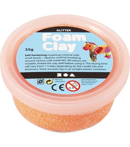 Grov modellervoks med små perler i flot glitterfarveMed modellervoks fra Foam Clay får du en grov modelleringsmasse tilsat små polystyrenperler til modellering og kreativ udfoldelse. Den grovkornede konsistens gør voksen nem at arbejde med og gør den særdeles velegnet til dekorativ beklædning af alverdens emner.Foam Clay er en selvhærdende modellervoks med en god hæfteevne, så du let kan beklæde og fastgøre modelleringsmassen på forskellige emner, helt uden brug af lim. Du beklæder nemt emner ved at trille små kugler af modellervoksen, hvorefter du presser dem fast på emnet og fordeler dem jævnt med fingrene. Du kan også rulle Foam Clay ud på f.eks. en plastlomme og lade massen tørre, hvorefter du kan udstanse eller klippe massen i forskellige faconer. Dine udklip kan herefter bruges til kreativ dekoration og fastgøres nemt til et emne med en frisk kugle voks.Modellervoksen leveres i praktiske lufttætte bøtter, til opbevaring af voksen. Låget skal holdes lukket ved opbevaring så du undgår uønsket tørring og hærdning. Farve: Glitter, orangeIndhold: 35 gSelvhærdende Tilsat små perler ...