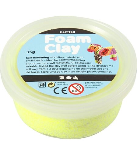 Grov modellervoks med små perler i flot glitterfarveMed modellervoks fra Foam Clay får du en grov modelleringsmasse tilsat små polystyrenperler til modellering og kreativ udfoldelse. Den grovkornede konsistens gør voksen nem at arbejde med og gør den særdeles velegnet til dekorativ beklædning af alverdens emner.Foam Clay er en selvhærdende modellervoks med en god hæfteevne, så du let kan beklæde og fastgøre modelleringsmassen på forskellige emner, helt uden brug af lim. Du beklæder nemt emner ved at trille små kugler af modellervoksen, hvorefter du presser dem fast på emnet og fordeler dem jævnt med fingrene. Du kan også rulle Foam Clay ud på f.eks. en plastlomme og lade massen tørre, hvorefter du kan udstanse eller klippe massen i forskellige faconer. Dine udklip kan herefter bruges til kreativ dekoration og fastgøres nemt til et emne med en frisk kugle voks.Modellervoksen leveres i praktiske lufttætte bøtter, til opbevaring af voksen. Låget skal holdes lukket ved opbevaring så du undgår uønsket tørring og hærdning. Farve: Glitter, gulIndhold: 35 gSelvhærdende Tilsat små perler ...