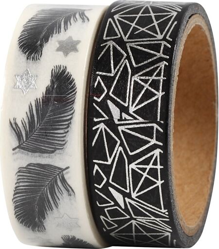 Maskingtape til pynt og dekorationMed maskingtape fra Vivi Gade får du et sæt med 2 ruller washitape af fint, mat papir med flotte påtrykte mønstre og designs.Brug f.eks. det flotte pynttape som kortpynt til kreativ kortfremstilling, så du nemt kan skabe de flotteste og mest kreative DIY kort, indbydelser og invitationer. Du kan også bruge pyntetapen til mange andre kreative formål og hobbyprojekter – kun fantasien sætter grænser.Design: Fjer/mønsterMål (BxL): 15 mm x 4 mPakke med 2 ruller ...