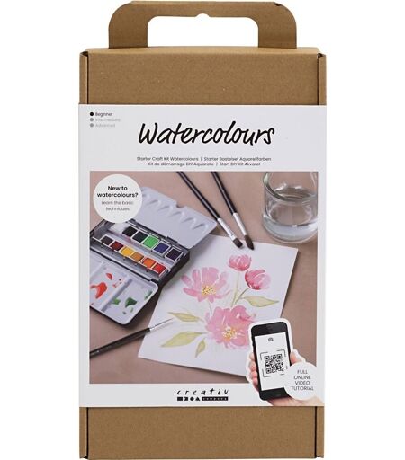 DIY Startsæt til fremstilling af flotte akvareller Vil du lære at male med akvarelfarver? Så er dette startsæt det perfekte valg. Med startsættet kan du lære at male med akvarel og sættet indeholder alle de materialer du skal bruge, og al den vejledning du behøver, så du kan komme godt fra start. Sættet indeholder: Art Aqua akvarelfarver Akvarelblok med 20 sider Pensler Lær at male med smukke akvarelfarver Scan QR-koden, og bliv ført ind i et spændene læringsunivers. Her finder du videoer, som trygt guider dig igennem de forskellige akvarelteknikker. Til sidst står du med et flot akvarelmaleri. ...