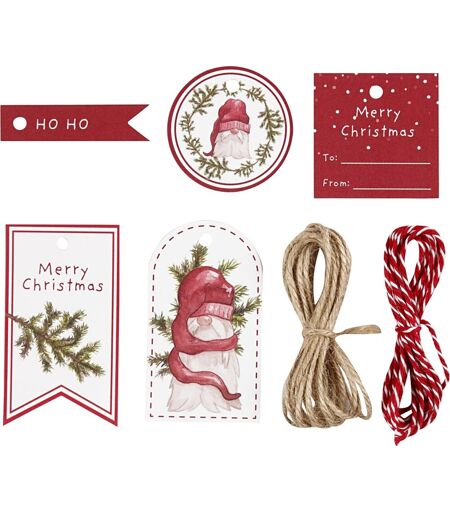 Fine julegavemærker af kartonDu får her en flot lille sortimentsæske med fine små gavemærker og tags i kraftigt karton i 5 forskellige juledesigns. Dertil medfølger både en naturfarvet, samt en rød-og-hvid-stribet snor til fastgørelse af mærkerne. De små og fine gavemærker er perfekte som til-og-fra kort og pynter flot på enhver julegave. Når gaven er valgt med omhu og det sammen gælder indpakningen, så bør kortet også være det. Med de søde små julegavemærker kan du give gavepakken og julegaven et ekstra lille pift og samtidig vise hvem der er giver og modtager af gaven på en fin og dekorativ måde.Design: Gammeldags JulMateriale: Kraftigt kartonAntal pr. pakke: 25 stk.2 x 3 meter snor medfølger ...