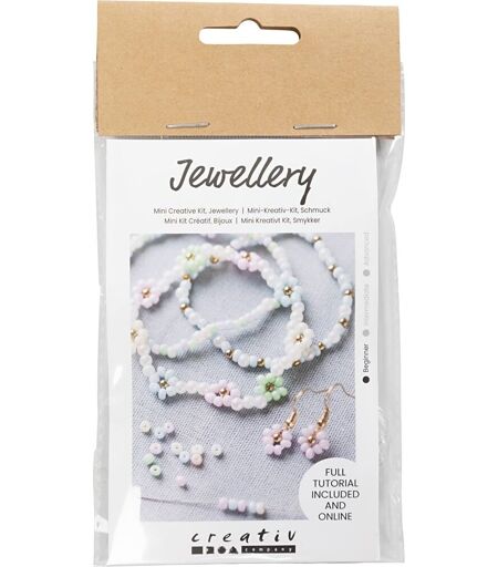 Mini DIY Kit til fremstilling af perlesmykker Vil du lave dine egne kreative smykker? Så er dette DIY minikit det perfekte valg. Med sættet kan du nemlig lave dine egne kreative smykker i form af armbånd og øreringe med fine rocaiperler og voksperler. Sættet indeholder alle de materialer du skal bruge, og al den vejledning og inspiration du behøver, for at komme godt i gang. Sættet indeholder: Voksperler Rocaiperler Elastiksnor Franske ørekroge Smykkenål Lær at lave dine egne kreative perlesmykker i fine lyse pastelfarver Det er sjovt at prøve sig frem med forskellige farvekombinationer – og uanset hvilken sammensætning, du vælger, får du et fint og personligt perlesmykke, som giver hverdagsoutfittet et frisk pust. Man bliver ofte meget gladere for ting, man selv har lavet - også når det gælder smykker. Men det behøver ikke at være svært at lave dine egne halskæder, øreringe og armbånd. Med dette minikit er det i virkeligheden nemt og ligetil at skabe fine og brugbare smykker fra bunden - og de færdige smykker kan du bruge som lækker selvforkælelse, eller som en overraskelse til en du har kær. ...