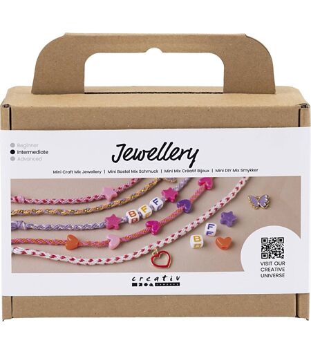 Mini DIY Kit til fremstilling af venskabsarmbånd Vil du lave dine egne kreative venskabsarmbånd og opleve magien ved at bære dine egne smykkedesigns? Så er dette DIY minikit det perfekte valg. Med sættet kan du nemlig lave dine egne farverige venskabsarmbånd med kumihimo fletteteknik, motivperler og bogstavperler. Sættet indeholder alle de materialer du skal bruge, og al den vejledning og inspiration du behøver, for at komme godt i gang. Sættet indeholder: Kumihimo knytteskive Knyttesnor Firgurperler Bogstavperler Vedhæng Knyttevejledning Lær at lave dine egne kreative venskabsarmbånd i flotte, friske farver Dette smykkemix giver dig et sjovt, lille smykkeprojekt, der er nemt at gå til. Sættet indeholder et håndplukket og farvestrålende udvalg af knyttesnor, perler, bogstaver og figurperler – og hvis du vil, kan du kombinere dem, så du får et unikt udtryk, der passer til dig. Brug de færdige venskabsarmbånd året rundt – både til hverdag og fest – og når outfittet mangler et frisk pift. Eller giv det som en sød gave, til en du holder af. ...