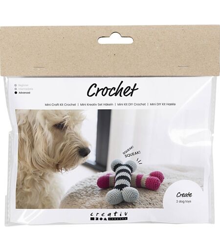 Mini DIY Kit til fremstilling af kødben hundelegetøj Med dette kit kan du hækle det sødeste kødben til din hund, som får halen til at logre. Kødbenet bliver hæklet i blødt bomuldsgarn og får sin helt egen piv-lyd. Sættet indeholder alle de materialer du skal bruge, og al den vejledning du behøver for at kunne lave kødbenet. Sættet indeholder: Bomuldsgarn i forskellige farver Squeaker Fyld Hæklenål Garnnål Lav personligt hundelegetøj til din bedste hundeven Dette er det ultimative hæklekit til alle hundeelskere. Som hundeejer kan du hækle dit helt eget kødben til vovsen derhjemme. Du får alt, hvad du skal bruge for at komme i gang – både lækkert bomuldgarn i høj kvalitet, fyld til at gøre kødbenet blødt og en squeaker, der giver lyd til legen. Kødbenet kan være en god overraskelse til den lille, nye hvalp – eller en sød gave til en hundeven. Kødbenet kan både aktivere, afstresse og underholde og bliver måske hundens nye yndlingslegetøj. ...