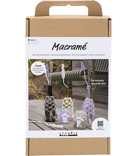 DIY Kit til fremstilling af glasdekorationer i macramé Elsker du kreativt genbrug? Så er dette DIY kit det perfekte valg. Med dette kit kan du nemlig lære at bruge den særlige knytteteknik macramé, så du kan upcycle dine gamle vinflasker og henkogningsglas ved at dekorere dem med kreative og farverige macraméknytninger. Sættet indeholder alle de materialer du skal bruge, og al den vejledning du behøver, så du kan komme godt i mål. Sættet indeholder: Macramé snor i forskellige farver Ståltråd Lær at knytte og lav flotte macramé glasdekorationer Med knytteteknikken, macramé, kan du give nyt liv til både gamle vinflasker og gamle henkogningsglas. Først renser du glassene fri for mærkater, og herefter dekorerer du dem med macraméknytning omkring. Kittet indeholder nok macramésnor til tre henkogningsglas til stearinlys, tre flasker til vaser og seks blomster knyttet omkring ståltråd. Når du er færdig, har du de fineste vaser og lys, som kan skabe ekstra sommerhygge på terrassen eller altanen. ...