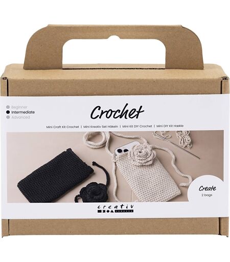 Mini DIY Kit til fremstilling af mobiltasker med roser Vil du lære at hækle dine egne små søde tasker og accessoires? Så er dette DIY minikit det perfekte valg. Med dette kit kan du nemlig lære at hækle fine og hjemmelavede accessoires i form af mobiltasker og dekorative roser. Sættet indeholder alle de materialer du skal bruge, og al den vejledning du behøver, så du kan komme godt i mål. Sættet indeholder: Bomuldsgarn i 2 farver Hæklenål Brochenåle Synål Lær at hækle og lav dine egne hjemmelavede accessoires Med dette kit kan du hækle to mobiltasker og to roser, som du kan mixe og matche til fine accessoires. Du kan skabe to mobiltasker – én i sort og én i beige – samt to roser, der matcher. Taskerne får en justerbar hank, som du kan tage af og bruge på nye, kreative måder. Sæt en lille brochenål på hver rose, og brug dem som pynt på taskerne. Sæt en lille brochenål på hver rose, og brug dem som pynt på taskerne eller følg trenden, og brug roserne som et cool choker rundt om halsen. ...