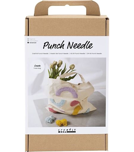 DIY Kit til fremstilling af mulepose med punch needle mønster Elsker du at give dine hverdagsting et kreativt pift? Så er dette DIY kit det perfekte valg. Her får du alt hvad du skal bruge til at lave dine egne punch needle mønstre på en klassisk mulepose. Sættet indeholder alle de materialer du skal bruge, og al den vejledning du behøver, for at lave en personlig mulepose med dit eget design. Sættet indeholder: Mulepose Garn i forskellige farver Punch Needle Broderiramme Pensel Broderistof Mønster Giv dine accessories et kreativt pift med punch needle dekorationer Med dette kit kan du dekorere en mulepose med et punch needle mønster i fine pasteller. Med broderiteknikken, punch needle, kan du tilføje et flot, tidløst mønster på en helt normal mulepose. Punch needle er både sjovt og nemt – selv for nybegyndere – og det hyggelige DIY-projekt er et, du sagtens kan lave derhjemme. Når du er færdig, har du en helt unik mulepose, som er både trendy og praktisk – og modsat en plastikpose – vil du elske at bruge den igen og igen, når du enten handler eller shopper. ...