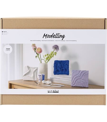 DIY Kit til fremstilling af 3D vægdekorationer Trænger dine vægge til lidt fornyelse? Så er dette kit det perfekte valg. Her lærer du nemlig at lave tre slags vægkunst på lærred – én med selvhærdende ler, én af papmaché-pulp og én med stukturpasta. Sættet indeholder alle de materialer du skal bruge, og al den vejledning du behøver. Sættet indeholder: Lærreder Pensel Maling Strukturpasta Selvhærdende ler Pulp Spartler Rulle Plastikhandske Lav flotte og kreative vægdekorationer med 3D effekt Med dette kit kan du lave tre kunstværker til din væg ved hjælp af tre forskellige teknikker. Alle værker får en fin 3D-effekt – og når de er tørre, kan du let pifte dem op med flotte farver. Saml f.eks. hele familien til en kreativ kunstdag, og lad også de større børn lave deres eget kunstværk til væggen. ...