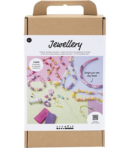 DIY Startsæt til fremstilling af børnesmykker Drømmer du og dine børn om at være smykkedesignere? Så er dette startsæt det perfekte valg. Med startsættet kan du nemlig lære at lave dine egne smykker med en masse forskellige typer af perler og smykkeler. Sættet indeholder alle de materialer du skal bruge, og al den vejledning og inspiration du behøver, for at komme godt fra start. Sættet indeholder: Plastikperler Figurperler Rocaiperler Elastiksnor Lim Smykkeler Runde udstikkere Stjerneformede udstikkere Små udstikkere Dobbeltklæbende tape Hårbøjle Lær at lave fine og kreative børnesmykker med perler og smykkeler Med dette kit kan børn lave farverige smykker af smykkeler og flotte, farverige perler. Med det bløde og smidige polymer ler, er det supernemt at forme sine egne smykkeperler – både de runde og de stjerneformede. Når perlerne først har hærdet i ovnen, kan børnene begynde at lave armbånd, halskæder og hårbøjle i lige den stil, de ønsker. Det er kun fantasien, der sætter grænser, når man er smykkedesigner – mix de forskellige perler, som I har lyst, og skab personlige perlesmykker i de fineste pastelfarver. Prøv også at blande forskellige farver ler, og skab perler med marmoreringseffekter. ...
