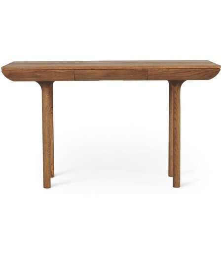 Warm Nordic Rúna Skrivebord L: 130 cm - Teak Smukt og tidløst skrivebord med skuffe fra danske Warm Nordic. Inspirationen til dette skønne bord har man fundet i den hemmelighedsfulde stemning, som de nordiske skove emmer af i skumringstiden. Med sin rene og klassiske form skaber dette skønne skrivebord et rum omkring sig og vil løfte indretningen, uanset om den står i stuen eller i et moderne kontor. Udover at fungere som et skrivebord, kan man også vælge at benytte det som et spisebord, hvis man har lidt spiseplads. Bordet har en fin og elegant skuffe, hvor du med fordel kan gemme dine kontorartikler, papirer såvel som dækkeservietter og servietter. Design: Isabel Ahm (2014) Materialer: Teakolieret eg Mål: L: 130 cm B: 65 cm H: 75 cm ...