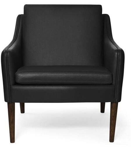 Warm Nordic Mr. Olsen Lounge Chair - Walnut/Black Den luksuriøse lænestol fra Warm Nordic, er designet af den ansete danske arkitekt Hans Olsen. Designet Mr. Olsen som kommer af designerens navn er et originalt design, som vil passe ind i det maskuline herreværelse såvel i den feminine sofakrog. Lænestolen er designet i 50'erne hvor den klassiske møbelkunst gjorde forskellen. Mr. Olsen er slank og organisk i sit udtryk og modsat mange andre af periodens klassikere, bidrager Mr. Olsen med en usædvanlig lethed. De bløde former går fint i spænd med de tilspidsede ben og stolen polstring fås i et hav af smukke tekstiler. OBS. Miljøbillederne viser ikke stolens farve, men viser derimod dens form og mulige anvendelse i indretningen. Design: Hans Olsen, 1956 Materialer: Ben: Valnødolieret massiv eg Polstring: Challenger 004 (Nevotex) Semi anilin læder Mål: H: 78 cm B: 81 cm D: 79 cm Sædehøjde: 46 cm Farve: Sort ...