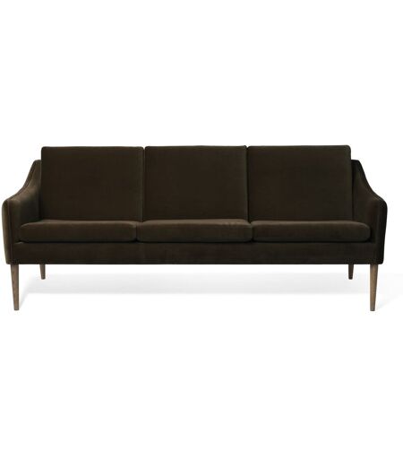 Warm Nordic Mr. Olsen 3 Seater Sofa L: 200 cm - Smoked Oak/Java Brown Den luksuriøse 3-personers sofa fra Warm Nordic, er designet af den ansete danske arkitekt Hans Olsen. Designet Mr. Olsen som kommer af designerens navn er et originalt design, som vil passe ind i det maskuline herreværelse såvel i den feminine sofakrog. Sofaen er designet i 50'erne hvor den klassiske møbelkunst gjorde forskellen. Mr. Olsen er slang og organisk i sit udtryk modsat mange andre af periodens klassikere, bidrager Mr. Olsen med en udsædvanlig lethed. De bløde former går fint i spænd med de tilspidsede bordben og sofaens polstring fås i et hav af smukke tekstiler. OBS. Miljøbillederne viser ikke stolens farve, men viser derimod dens form og mulige anvendelse i indretningen. Design: Hans Olsen, 1958 Materialer: Tekstil, skum, springsystem Ben: Massiv olieret eg Polstring: Ritz 8513 Mål: L: 200 cm D: 79 cm H: 78 cm Sædehøjde: 46 cm ...