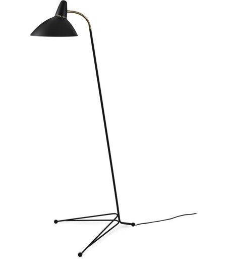 Warm Nordic Lightsome Floor Lamp H: 132 cm - Black Noir Smuk gulvlampe med elegant formet bred skærm. Gulvlampen er designet af 50'ernes danske lysmester, Svend Aage Holm-Sørensen. Lightsome gulvlampen iscenesætter på smukkeste vis det indirekte lys, hvilket også kendetegner andre af tidens ikoniske lamper. Lampen har grundlæggende et blidt formsprog og fine messingdetaljer, som gør det til et tidsløst design i højeste kvalitet. Lampen kan på smukkeste vis placeres i mange af hjemmets rum, og vil give rummet både karakter og fin belysning. Design: Svend Aage Holm-Sørensen, 1959 Materialer: Lakeret stål/Massiv messing Tekstilledning Mål: L: 45 cm D: 47 cm H: 132 cm Ledningslængde: 3 meter Farve: Sort Specifikationer: Lyskilde: E27 max 25W - ikke inkluderet Energiklasse: A++ - A Spænding: 220-240V Kontakt: På ledningen ...