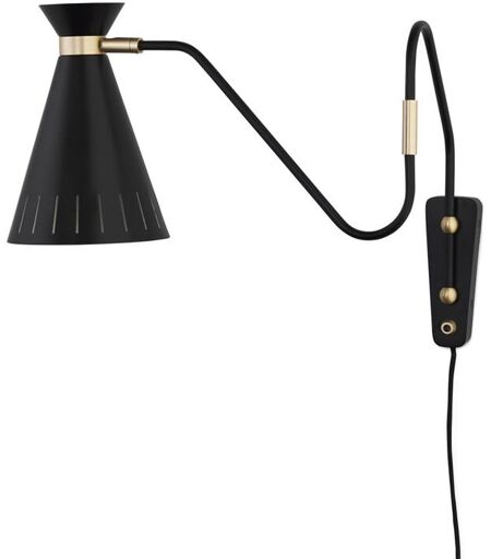 Warm Nordic Cone Wall Lamp H: 30 cm - Black Noir Smuk væglampe med charme, finesse og en elegant formet skærm. Lampen er designet af 50'ernes danske lysmester, Svend Aage Holm-Sørensen. Cone væglampen iscenesætter på smukkeste vis det indirekte lys, hvilket også kendetegner andre af tidens ikoniske lamper. Lampen har grundlæggende et blidt formsprog og fine messingdetaljer, som gør det til et tidsløst design i højeste kvalitet. Lampen kan på smukkeste vis placeres i mange af hjemmets rum, og vil give rummet både karakter og fin belysning. Skærmen på en let svungne arm kan drejes i alle retninger, så du opnår det optimale lys i forhold til lampens ønskede funktion. Design: Svend Aage Holm-Sørensen, 1954 Materialer: Lakeret stål/Massiv messing Tekstilledning Mål: L: 16 cm D: 63 cm H: 30 cm Dimension skærm i cm: Ø: 16 cm H: 23 cm Ledningslængde: 3 meter Farve: Sort Specifikationer: Lyskilde: E27 max 25W - ikke inkluderet Energiklasse: A++ - A Spænding: 220-240V Kontakt: På basen ...