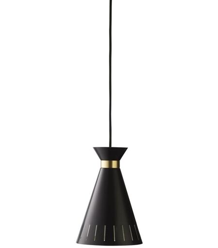 Warm Nordic Cone Pendel Ø: 16 cm - Black Noir Smuk og klassisk pendel fra Warm Nordic. Lampen er designet af den internationalt anerkendte lysdesigner Svend Aage Holm-Sørensen. Med sin skønne form vil Cone lampen med sin asymmetriske skærm oplyse boligens rum både smukt og blødt. Lampen er yderst dekorativ i mange af hjemmets rum - brug den eksempelvis over køkkenøen, spisebordet eller et helt tredje sted. Cone serien af Svend Aage Holm-Sørensen byder desuden også på gulvlamper og væglamper. Design: Svend Aage Holm-Sørensen, 1954 Materialer: Lakeret stål/Massiv messing Tekstilledning Mål: Ø: 16 cm H: 23 cm Ledningslængde: 3 meter Farve: Sort Specifikationer: Lyskilde: E27 max 25W - ikke inkluderet Energiklasse: A++ - A Spænding: 220-240V ...