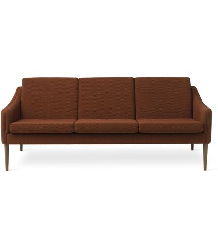 Warm Nordic Mr. Olsen 3 Seater Sofa L: 200 cm - Smoked Oak/Spicy Brown Den luksuriøse 3-personers sofa fra Warm Nordic, er designet af den ansete danske arkitekt Hans Olsen. Designet Mr. Olsen som kommer af designerens navn er et originalt design, som vil passe ind i det maskuline herreværelse såvel i den feminine sofakrog. Sofaen er designet i 50'erne hvor den klassiske møbelkunst gjorde forskellen. Mr. Olsen er slang og organisk i sit udtryk modsat mange andre af periodens klassikere, bidrager Mr. Olsen med en udsædvanlig lethed. De bløde former går fint i spænd med de tilspidsede bordben og sofaens polstring fås i et hav af smukke tekstiler. OBS. Miljøbillederne viser ikke stolens farve, men viser derimod dens form og mulige anvendelse i indretningen. Design: Hans Olsen, 1958 Materialer: Tekstil, skum, springsystem Ben: Røget massiv eg Polstring: Mosaic 472 (Kvadrat) Martindale: 100.000 Mål: L: 200 cm D: 79 cm H: 78 cm Sædehøjde: 46 cm ...