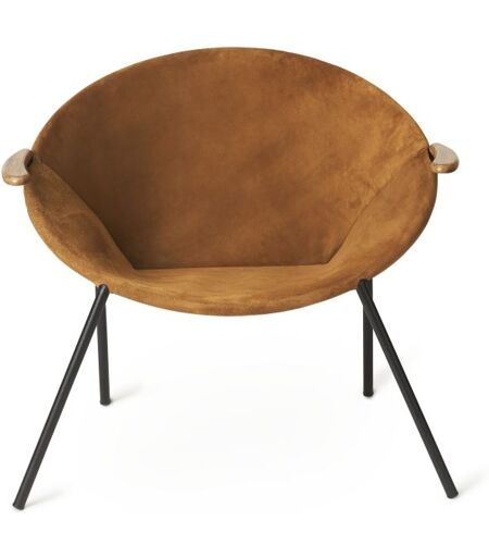 Warm Nordic Balloon Chair - Hazel Brown Design: Hans Olsen, 1955 Materialer: Stel: Black Noir pulverlakeret stål Armlæn: Olieret massiv teak Læder: Sheerwood Nubuck, Hazel Brown Komposition: Anilin læder Mål: B: 85 cm D: 75 cm H: 68 cm Sædehøjde: 37 cm ...