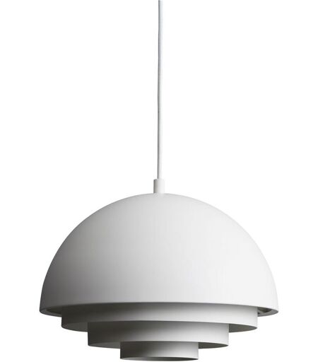 Warm Nordic Milieu Colour Mini Pendel Ø: 29 cm - Clear White Super fin og elegant pendel fra danske Warm Nordic. Denne skønne lampe svæver let og elegant i rummet, hvilket var noget designeren var fascineret af. Med en form som en halvkugle og et lampedesign i flere lag, skaber det en smuk belysning, som ikke vil blænde. Dens smukke og originale design er inspireret af Jo Hammerborgs passion for flyvning og faldskærmsudspring - det kommer også til udtryk i denne pendel. Brug den eksempelvis over spisebordet, og skab et fint udtryk. Design: Jo Hammerborg (1975) Materialer: Lakeret stål Ledning af tekstil Mål: H: 21,5 cm Ø: 29 cm Ledning: 3 meter Farve: Hvid Sort ledning Specifikationer: Lyskilde: E27 max 40W - ikke inkluderet Energiklasse: A++-A Spænding: 220-240V ...