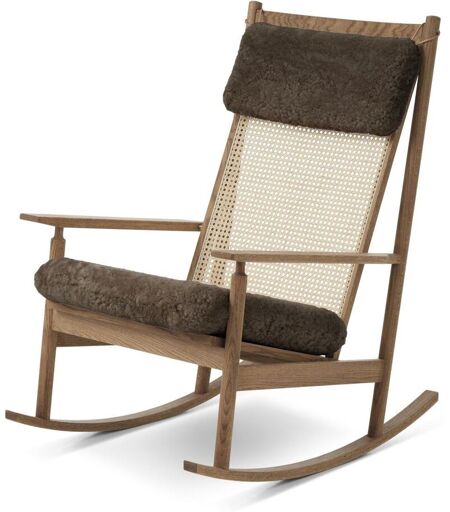 Warm Nordic Swing Rocking Chair H: 103 cm - Teak/Drake Smuk og tidløs gyngestol fra danske Warm Nordic. Hans Olsen, som er designeren på denne skønne stol, har skabt et enkelt og raffineret design, som vil kunne passe ind i ethvert hjem indrettet med forkærlighed til former og naturmaterialer. Stolens ryg er håndflettet i sjene i et simpelt og luftigt mønster, som kombineret med træstellet giver et let og fint udtryk. Gyngestolen er både smuk, æstetisk og komfortabel, og kredser om sig med sine detaljer. Ikke nok med det, så er en også behagelig at sidde i, også længere tid ad gangen. OBS. Miljøbillederne viser ikke stolens farve, men viser derimod dens form og mulige anvendelse i indretningen. Design: Hans Olsen (1956) Materialer: Stel: Teakolieret massiv eg Polstring: Curly 12 mm sheepskin Mål: B: 68 cm D: 91 cm H: 103 cm Farve: Drake ...