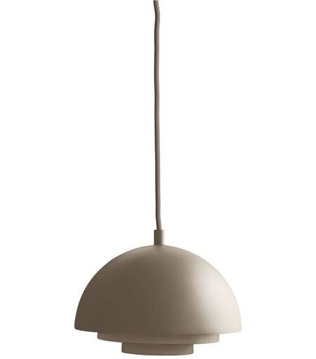 Warm Nordic Milieu Colour Mini Mini Pendel Ø: 20 cm - Pure Cashmere Super fin og elegant pendel fra danske Warm Nordic. Denne skønne lampe svæver let og elegant i rummet, hvilket var noget designeren var fascineret af. Med en form som en halvkugle og et lampedesign i flere lag, skaber det en smuk belysning, som ikke vil blænde. Dens smukke og originale design er inspireret af Jo Hammerborgs passion for flyvning og faldskærmsudspring - det kommer også til udtryk i denne pendel. Brug den eksempelvis over sengebordet, køkkenbordet eller sofabordet og skab et fint udtryk. Design: Jo Hammerborg (1975) Materialer: Lakeret stål Ledning af tekstil Mål: Ø: 20 cm Ledning: 3 meter Farve: Brun Brun ledning Specifikationer: Lyskilde: E14 max 25W - ikke inkluderet Spænding: 220-240V ...