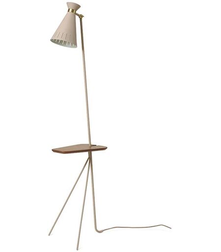 Warm Nordic Cone Floor Lamp With Table H: 144 cm - Pure Cashmere/Teak