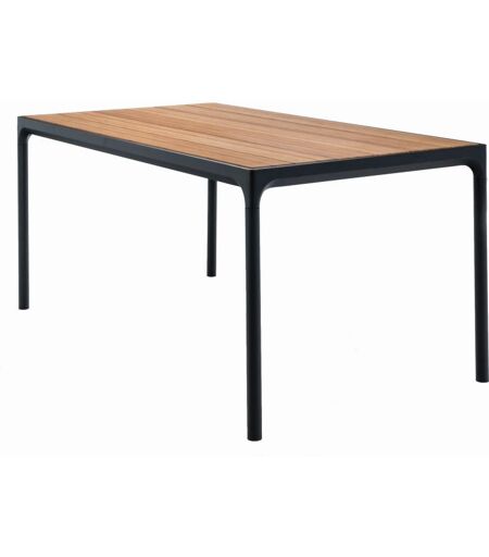 HOUE Four Dining Table 90x160 cm - Alu / Black Lækkert havebord fra HOUE. Havebordet har en bordplade, som er lavet af bambus. Den naturlige overflade er neutral og komplimenterer derfor andre farver rigtig flot. Det sorte stel af aluminium, giver bordet et super fint udtryk. Det moderne og funktionelle bord er tidsløst og kan anvendes i mange år. Mix og match det med den havestol, der passer bedst ind i din stil. Serien Four fra Houe laver også havebordet i 3 andre størrelser, udforsk brandet her på vores hjemmeside eller kontakt vores dygtige sælgere for den rette rådgivning. Serien Four har fået sit navn fordi at bordet har 4 ben, uanset hvilket størrelse du køber. Bemærk: Havebordet leveres usamlet. Design: Henrik Pedersen Materiale: Stel: Pulverlakeret sort aluminium Sæde: Bambus lameller Mål: L: 90 cm B: 160 cm H: 74 cm Vedligeholdelse: Bambusmøbler kan du have i mange år, så længe at du vedligeholder dem korrekt. Bambus er et naturprodukt og skal derfor også behandles derefter. Det er vigtigt, at bambus får olie et par gange om året. Minimum 2 gange. ...