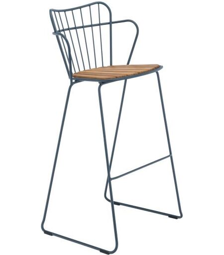 HOUE Paon Bar Stool - Midnight Blue Smuk barstol fra HOUE. Stolen er designet af danske Henrik Pedersen og er fremstillet i pulverlakeret metal og bambuslameller. Paon har et let og skandinavisk udtryk, dog med et strejf af fransk romantik. Af en metalstol at være, så har Paon en utrolig siddekomfort, som man ikke forventer. Den afrundede ryg er nemlig med til at omfavne dig med tryghed og komfort, der resulterer i total afslapning på terrassen. Lav din terrasse om til din helt egen feriedestination med smukke havemøbler og en hjemmebar. Serien Paon fra HOUE består også af en havestol, bænk og loungestol så du kan gennemføre stilen på terrassen. Design Henrik Pedersen Materiale Stel: Pulverlakeret metal - Blå Sæde: Bambus lameller Mål H: 107 cm D: 47 cm B: 55 cm Sædehøjde: 78 cm Vedligeholdelse: Bambusmøbler kan du have i mange år, så længe at du vedligeholder dem korrekt. Bambus er et naturprodukt og skal derfor også behandles derefter. Det er vigtigt, at bambus får olie et par gange om året. Minimum 2 gange. ...