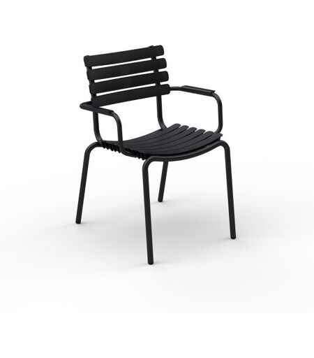 HOUE ReCLIPS Havestol B: 61 cm - Sort / Aluminium Den smukke havestol med brede plastiklameller på et minimalistisk stel i pulverlakeret aluminium. Stolen har et rent og skarpt design, men med de bløde, runder kurver får den også et levende og dynamisk udtryk. Lamellerne er lavet af dansk husholdningsplastikaffald og produceret i Danmark. Her er altså i bund og grund tale om en kombination mellem dansk design og dansk innovation, som smelter sammen og harmonerer rigtig godt ved dette møbel. ReCLIPS stolene kan stables. Designer: Henrik Pedersen Materialer: Stel: Pulverlakeret aluminium Lameller: 97% husholdningsplastikaffald, farvepigmenter og UV-beskyttelse Armlæn: Aluminium Mål: H: 81 cm B: 61 cm D: 58 cm Farve: Sort ...