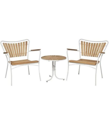 Mandalay Marguerit Loungebord Ø50 cm Inkl. 2 Loungestole Havemøbelsæt - Hvid/Teak