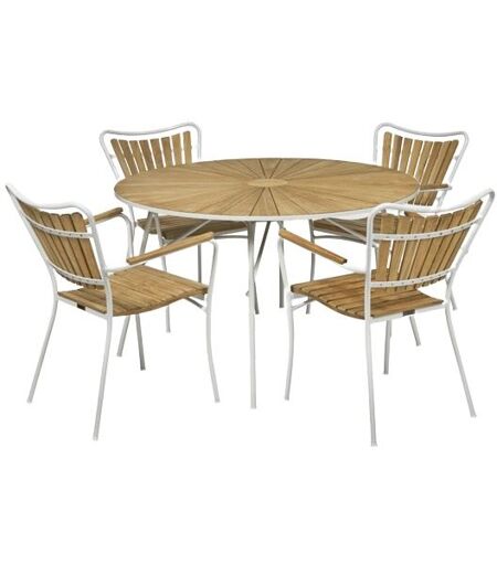 Mandalay Marguerit Havebord Ø120 cm Inkl. 4 Havestole Havemøbelsæt - Hvid/Teak