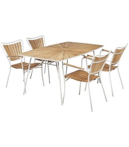 Mandalay Marguerit Havebord L: 144 cm Inkl. 4 Havestole Havemøbelsæt - Hvid/Teak