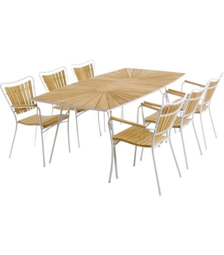 Mandalay Marguerit Havebord L: 200 cm Inkl. 6 Havestole Havemøbelsæt - Hvid/Teak