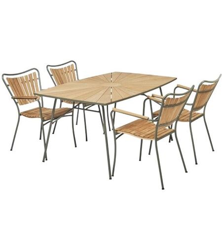 Mandalay Marguerit Bådformet Bord 144x90 cm Inkl. 4 Havestole Havemøbelsæt - Olivengrøn/Teak