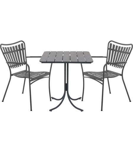 Dansk design klassiker i holdbare materialer Dette sæt består af et Pure cafebord L.67 cm og 2 Marguerit Pure havestole. Sættet er perfekt til det lille selskab, der ønsker at nyde det danske sommervejr, hvad enten det er ved caféen eller i haven. Bordet er med bordplade i det velkendte kompaktlaminat, der er både formstabilt og modstandsdygtigt overfor vejr og vind. Bordet er designet med udgangspunkt i den populære Marguerit-serie, så bordets understel har samme look - men teaktræet er skiftet ud med et helt vedligeholdelsesfrit materiale til bordpladen. Lamellernes design er lavet, så vand nemt kan tørres af. Vi ønskede at skabe et bord, der kunne anvendes hele året i de små uderum. Havebordet er ideelt for dem, der ikke har mulighed for at stille det væk for vinteren i et kælderrum eller under halvtag. Marguerit Pure havestolen er formgivet med afsæt i den klassiske Marguerit havestol. Pure Cafebord: Farve: Antracit Dimensioner (LxBxH): 67 x 67 x 72/68,5 cm Marguerit Pure havestol: Farve: Antracit Dimensioner (BxDxH): 60 x 41 x 83/44,5 cm Stabelbar Bordet leveres usamlet, til denne medfølger samlevejledning. Stole leveres samlet. Bemærk, at Lomax anbefaler, at havemøbler opbevares indendørs udenfor sæsonen. ...