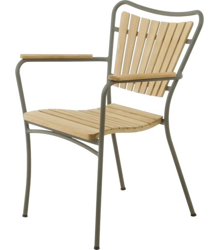 Dansk design klassiker i holdbare materialer Margueritstolen fra Mandalay er en særlig dansk design klassiker, som er lavet af indonesisk teaktræ og rustfrit stel i pulverlakeret aluminium. Stolens kurvede sæde og komfortable ryg er begge ergonomisk designet – ydermere kan stolene stables, så de fylder mindst muligt, hvis de skal sættes væk udenfor sæsonen. Stolen er udført i vejrbestandige kvalitetsmaterialer, der kræver et minimum af vedligeholdelse. For at beskytte teaktræet og forlænge det holdbarhed, anbefaler vi, at du behandler dem inden de tages i brug første gang. Hvor ofte du skal behandle produkterne afhænger af: vejr- og vind, slitage og daglig anvendelse af produkterne. Møbler med teak vil altid patinere over tid og få en næsten sølvgrå overflade. Produktet er produceret af FLEGT-certificeret træ – lovlig skovdrift. Farve: Olivengrøn, teak Materiale: Aluminium, teak Dimensioner (HxBxD): 82,5/44,5 x 60 x 41 cm Ergonomisk design Stabelbar Denne vare leveres samlet. Bemærk, at Lomax anbefaler, at havemøbler opbevares indendørs udenfor sæsonen. ...