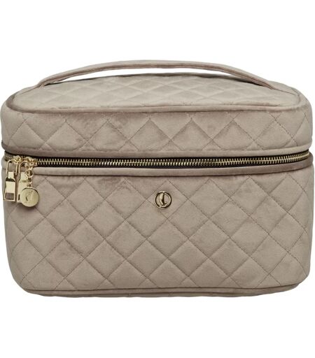 Coming Copenhagen Kaia Beauty Box - Sandy Beige er en super smuk beauty box med plads til det hele og lidt til. Den er fremstillet i et luksuriøst, quiltet velourmateriale, og sort fór med fine små guldprikker, som tilsammen giver boxen et ekslusivt look. Beauty boxen er designet med et stort hovedrum og en rummelig netlomme med lynlås holdes dine produkter sikkert på plads. Den har tilmed elastikker i siderne, som sikrer, at alt står stabilt – også når du er på farten, ligesom den desuden har en ekstra lille lomme til f.eks. smykker. Med Coming Copenhagen Kaia Beauty Box behøver du ikke at bekymre dig om pladsmangel - den kan nemlig rumme alt det, som du har brug for både i hverdagen og på ferien. Detaljer: Beautybox Luksuriøst, quiltet velourmateriale Et stort hovedrum Rummelig netlomme med lynlås Elastikker i siderne Ekstra lille lomme til f.eks. smykker. Sort fór med små guldprikker PETA certificeret (ingen animalske materialer er anvendt) Mål: H: 19 cm L: 27 cm B: 16,5 cm ...