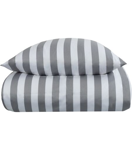 Borg Living Stribet sengetøj til dobbeltdyne - 200x200 cm - Blødt bomuldssatin - Nordic Stripe - Gråt og hvidt sengesæt