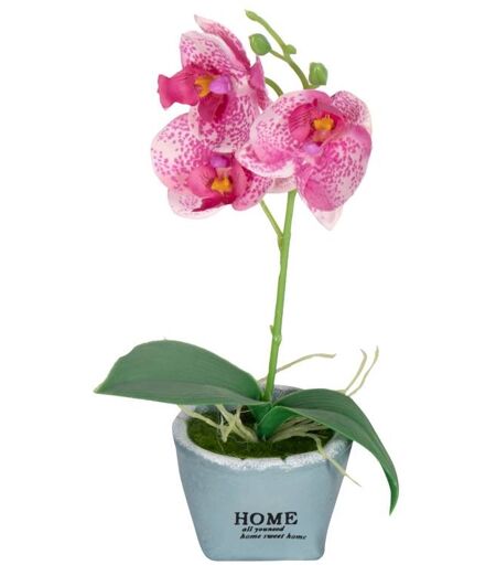 Type: Orkidé - kunstig plante Farve: Lilla Højde: 26 cm Diameter: 15 Materiale: Kunststof Potte: Hvid lerpotte Vedligeholdelse: Kan let vedligeholdes med en fugtig klud Leveres i: Kasse Smuk, kunstig plante til dit hjem Tilføj et strejf af elegance til din boligindretning med vores kunstige orkidé. Med sit naturtro design og minimal vedligeholdelse er denne orkidé det perfekte valg for dig, der ønsker en stilfuld og vedvarende dekoration. Orkidéen er 26 cm høj og kommer med tre lilla blomster i en hvid lerpotte med teksten "HOME - All you need - Home sweet home". Kunstige planter kræver ingen vanding, beskæring eller særligt lys, hvilket gør dem ideelle til travle hjem eller kontorer. Planten er lavet af holdbart plastik, der sikrer, at den bevarer sit friske og livlige udseende i mange år. Du behøver kun at tørre den af med en fugtig klud en gang imellem for at holde den fri for støv. Den er perfekt til både hjem og erhverv, hvor det æstetiske udtryk er vigtigt, men hvor tiden til pleje af levende planter er begrænset.Find din perfekte, kunstige plante her. ...