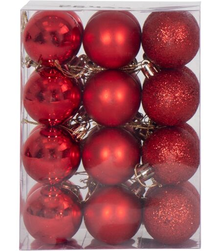 Home-tex Sæt med 24 Julekugler - Mix af røde klassiske juletræskugler - Ø4 cm