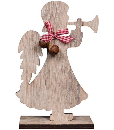 Home-tex Julepynt - Engel med sløjfe og bjælder - 18 cm - Smukt udskåret i krydsfinér