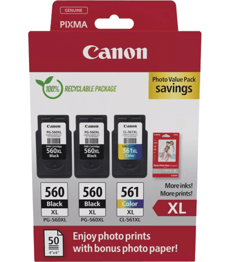 Canon 2x Pg-560xl + Cl-561xl + Papir Cmyk Original Multipack 2x 14,3 + 12,2 Ml. (3712c012)