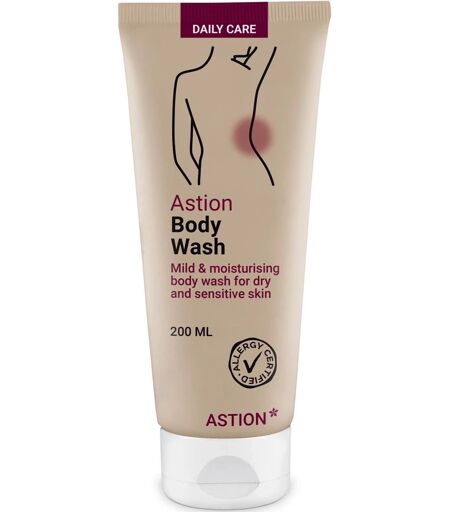 Astion Pharma Body Wash er en mild, fugtgivende og beroligende body wash til tør, irriteret og følsom hud, som er specielt udviklet til at tackle udfordringer ved eksemramt hud. Denne kropssæbe danner et let skum og den nøje sammensatte formel med Urea og Niacinamid (Vitamin B3) renser skånsomt og effektivt huden uden at udtørre eller irritere. Urea hjælper med at bevare fugten og beskytte huden, mens Niacinamid beroliger og reducerer rødme, hvilket gør denne body wash perfekt til daglig brug for selv de mest følsomme hudtyper. Denne body wash er AllergyCertified og parfumefri, hvilket gør den sikker at bruge til både voksne og børn fra 0 år. Den er ideel for familier, der søger en sikker og effektiv løsning til daglig hudpleje, især ved eksem, kløe, tørhed og irriteret hud. Fordele: Body wash Til tør, irriteret og følsom hud Renser skånsomt og effektivt huden Fugter og beskytter huden Beroligende og blødgørende Reducerer rødme Danner et let skum Til daglig brug Velegnet til voksne og børn fra 0 år AllergyCertified Parfumefri Anvendelse: Anvendes på våd hud Massér en passende mængde på huden med cirkulære bevægelser Skyl grundigt af med lunkent vand Afslut med at give huden fugtpleje i form af en bodylotion eller fedtcreme tilpasset din huds behov Ingrediensliste: Aqua/Water, Cocamidopropyl Betaine, Glycerin, Urea, Sodium Lauroyl Sarcosinate, Sodium Lauryl Sulfoacetate, Sodium Chloride, Betaine, Niacinamide, Lactic Acid, Sodium Citrate, Sodium PCA, Sodium Benzoate, Potassium Sorbate, PEG-120 Methyl Glucose, Dioleate, Allantoin, Panthenol, Glyceryl Caprylate, Tetrasodium Iminodisuccinate, Pantolactone, Tocopherol. ...