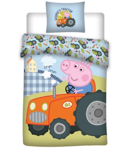 Licens Junior sengetøj 100x140 cm - Gustav Gris og traktor - 2 i 1 design - 100% bomulds sengesæt