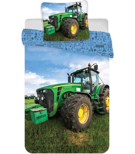 Licens Junior sengetøj 100x140 cm - Vendbart sengesæt med en grøn traktor - 100% blødt bomulds sengelinned