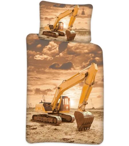 Licens Børnesengetøj - 140x200 cm - Gravemaskine sengesæt - Vendbar dynebetræk - 100% bomuld