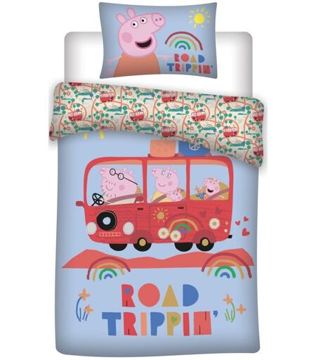 Licens Gurli Gris junior sengetøj 100x140 cm - Gurli Gris sengesæt - 2 i 1 design - Road trip - 100% bomuld
