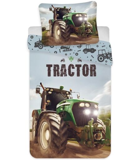 Licens Traktor junior sengetøj 100x140 cm - Traktor med lysende lygter - 2 i 1 design - 100% bomuld